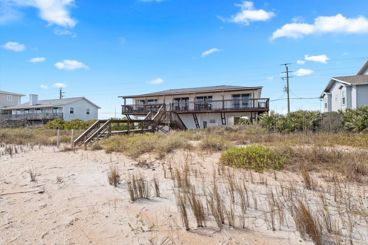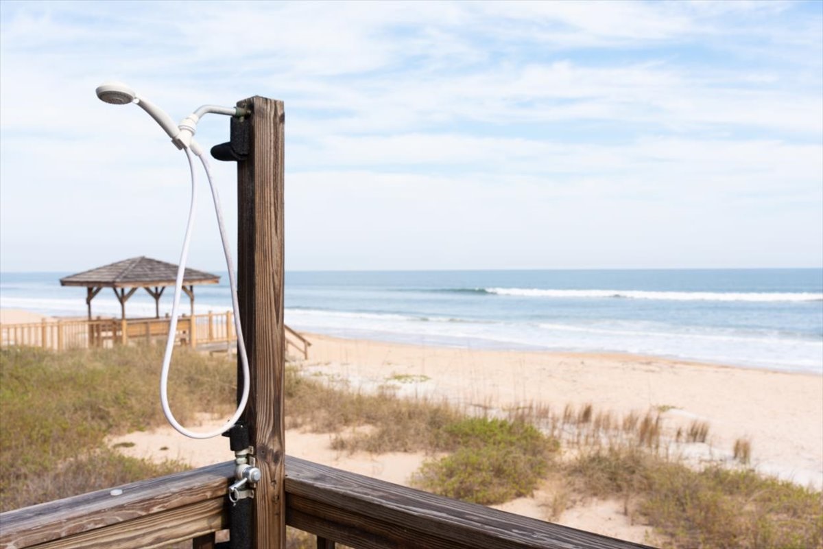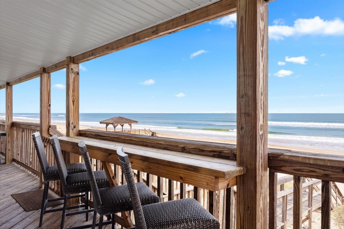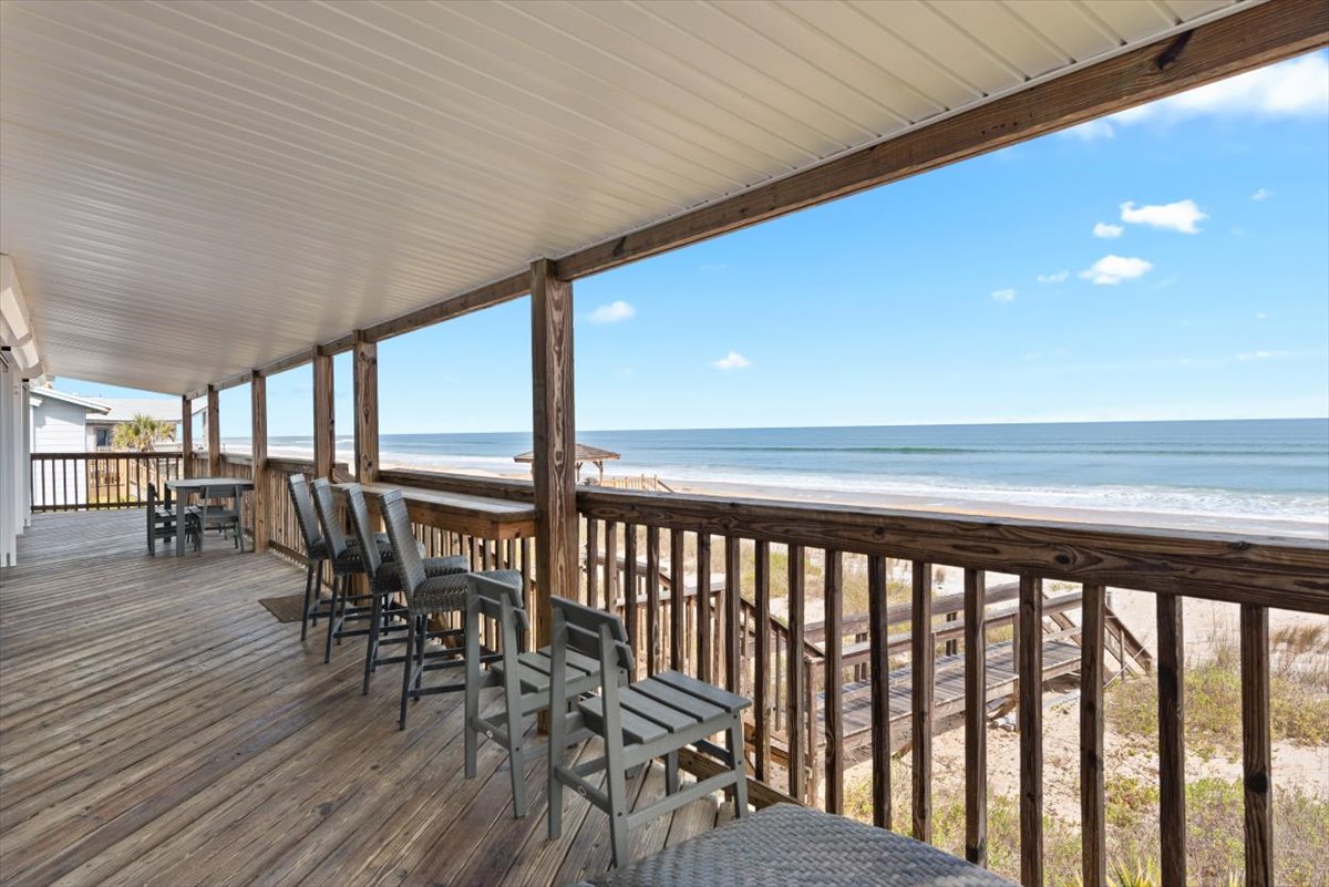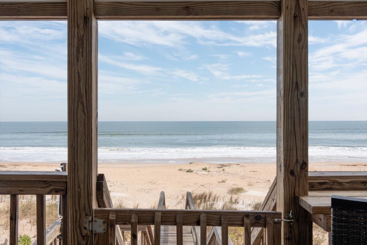 Welcome to “Dolphin Dunes”. This roomy 4 bedroom, 3 bath home has been recently remodeled! All of the bedrooms and the living areas are located on the 2nd floor, which means that you will have incredible views of the beach and ocean from just about anywhere in the house. The open floor plan is perfect for enjoying the company of friends and family. Dolphin Dunes will comfortably sleep 8 adults. There are two bedrooms on the ocean side of the house. Each has a queen bed, and magnificent views of the ocean. These beachside rooms have sliding glass doors that lead out to the oceanfront balcony. The third bedroom also has a queen bed and the 4th bedroom has two twin beds, perfect for teens or single adults. Each bedrooms feature high quality linens, towels, and comfortable beds. There 3 bathrooms total. Two upstairs and one one the beach level. One has a shower/bath tub combination, and the other two have walk-in showers. The bedrooms are in each corner of the house. The north bedrooms share the north bathroom, and the south bedrooms share the south bathroom. The third bathroom can be entered from the main level and or the beach.