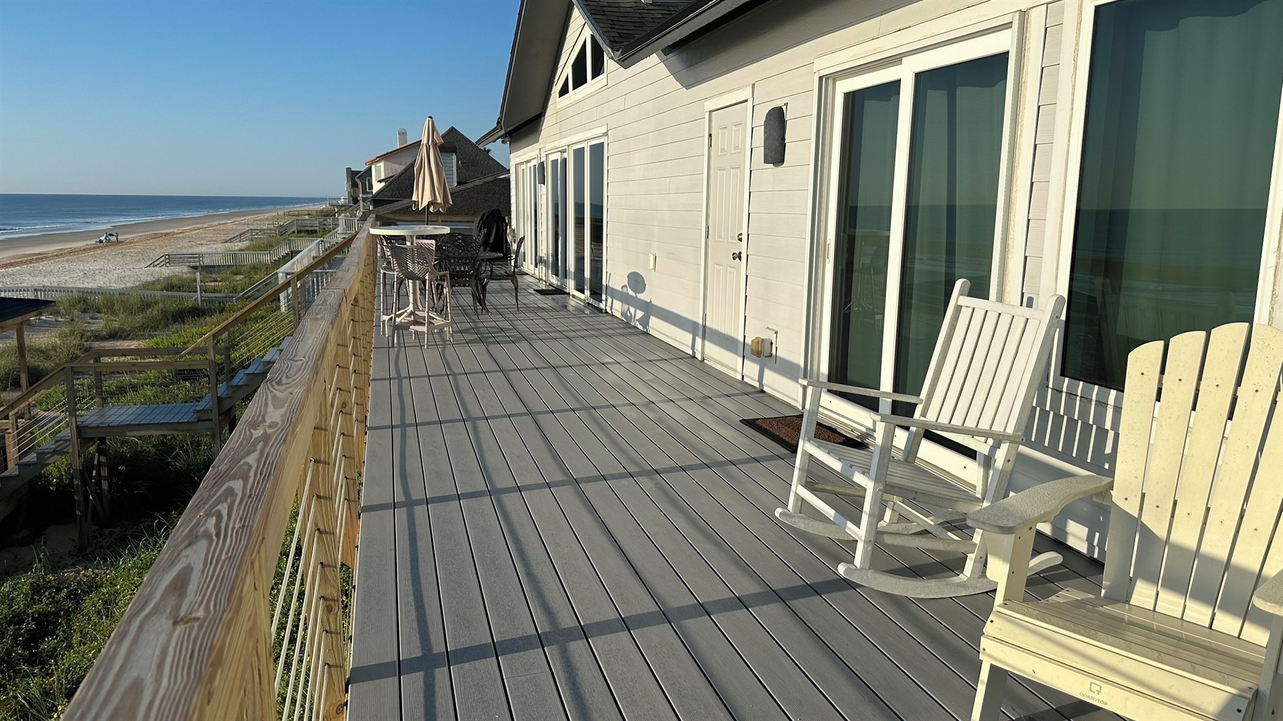 There is a deck that runs the length of the ocean side of the house that gives you great views, a place to eat al fresco, and direct access to the beach. At the bottom of the walkway, at beach level, there is an incredible large gazebo so you can sit and enjoy the beach in the shade! It is a great spot to enjoy the ocean breezes!