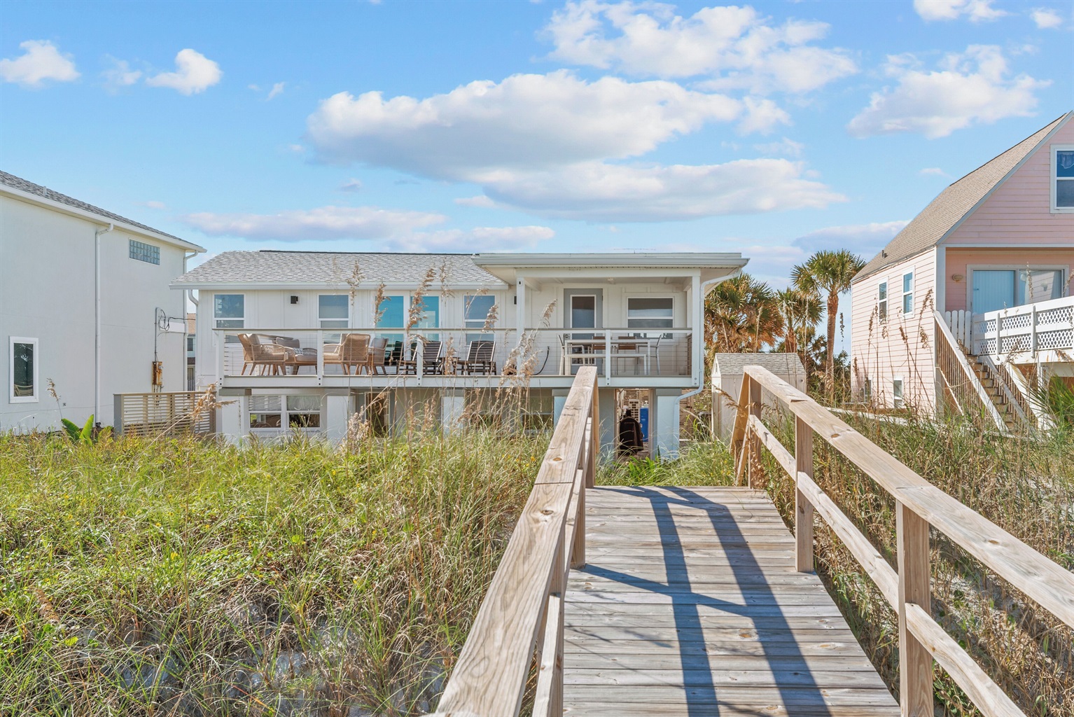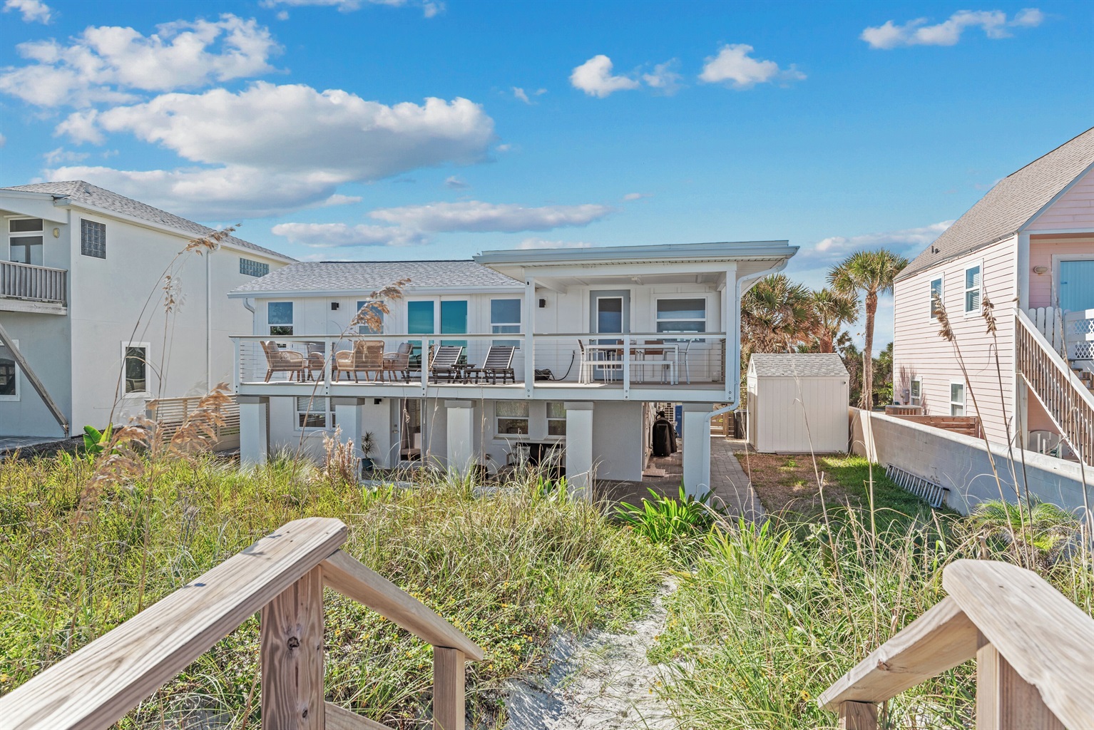 Welcome to Seascape Cottage, a beautifully updated oceanfront getaway in St. Augustine, Florida. This split-level retreat features two bedrooms and two bathrooms, a private dune walkover to the sand, and expansive decks perfect for outdoor lounging and dining.