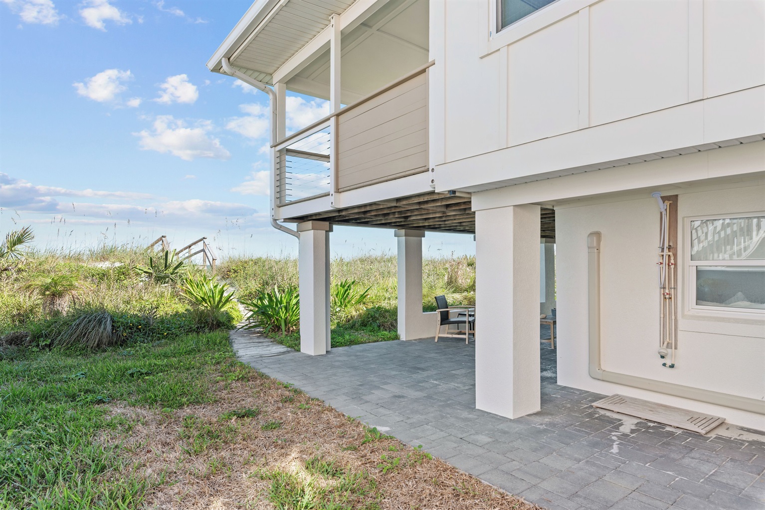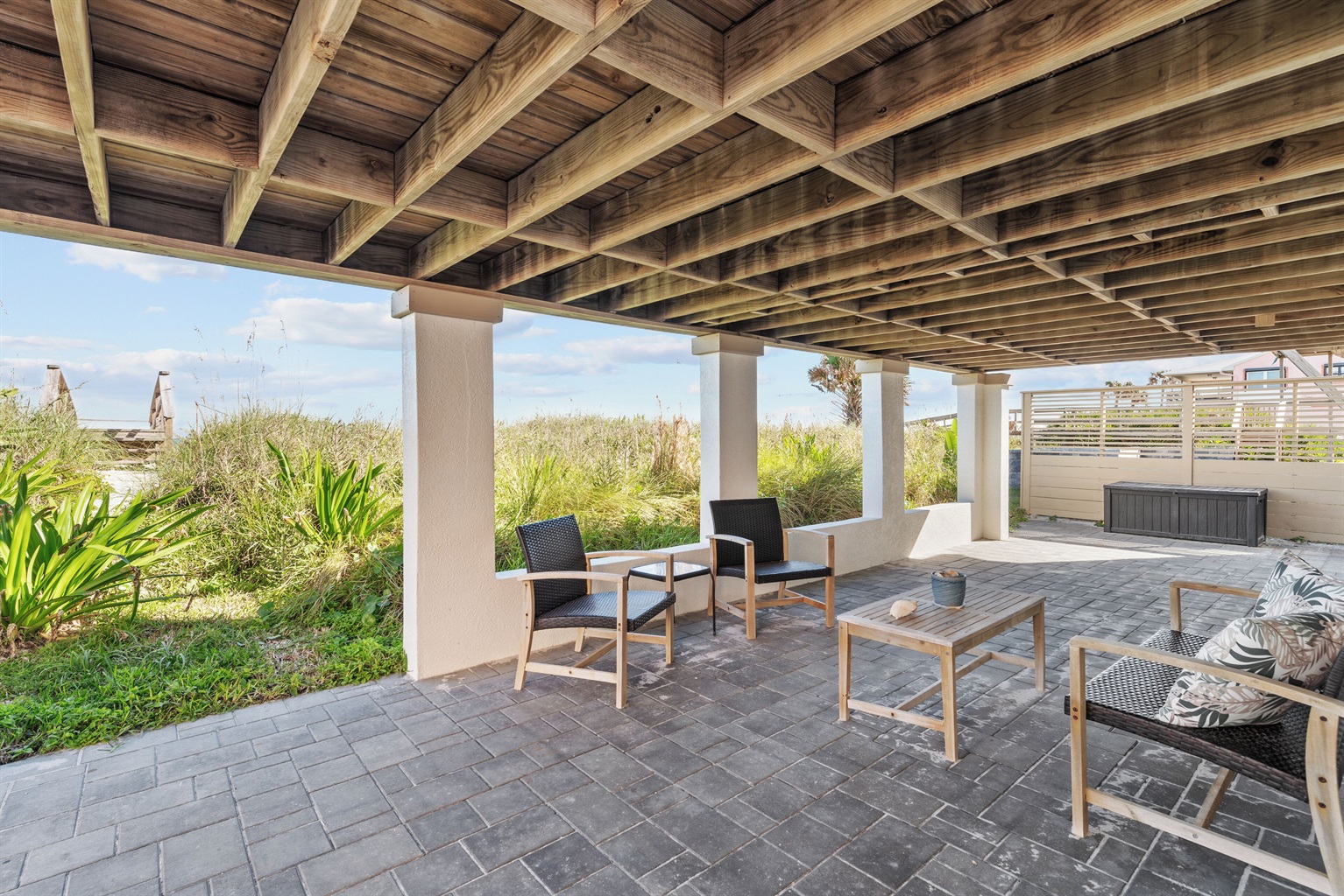 Step outside to a covered patio where you can relax in the shade and take in ocean views just steps from the beach.
