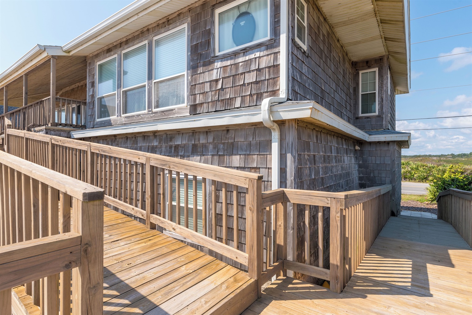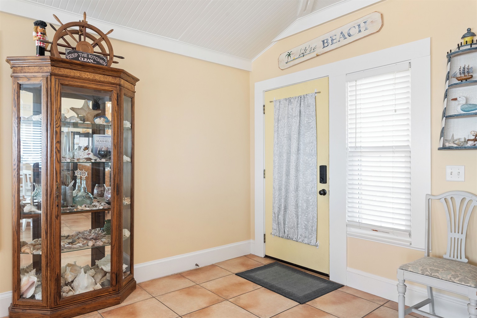 The home’s two-level deck is designed for outdoor living. The covered upper deck provides shade during the day, while the open lower deck is perfect for soaking up the sun. From the deck, a ramp leads to the landing behind the seawall, and just a few more steps put your feet in the sand. The beach here is quiet, uncrowded, and perfect for swimming, shelling, or simply relaxing.